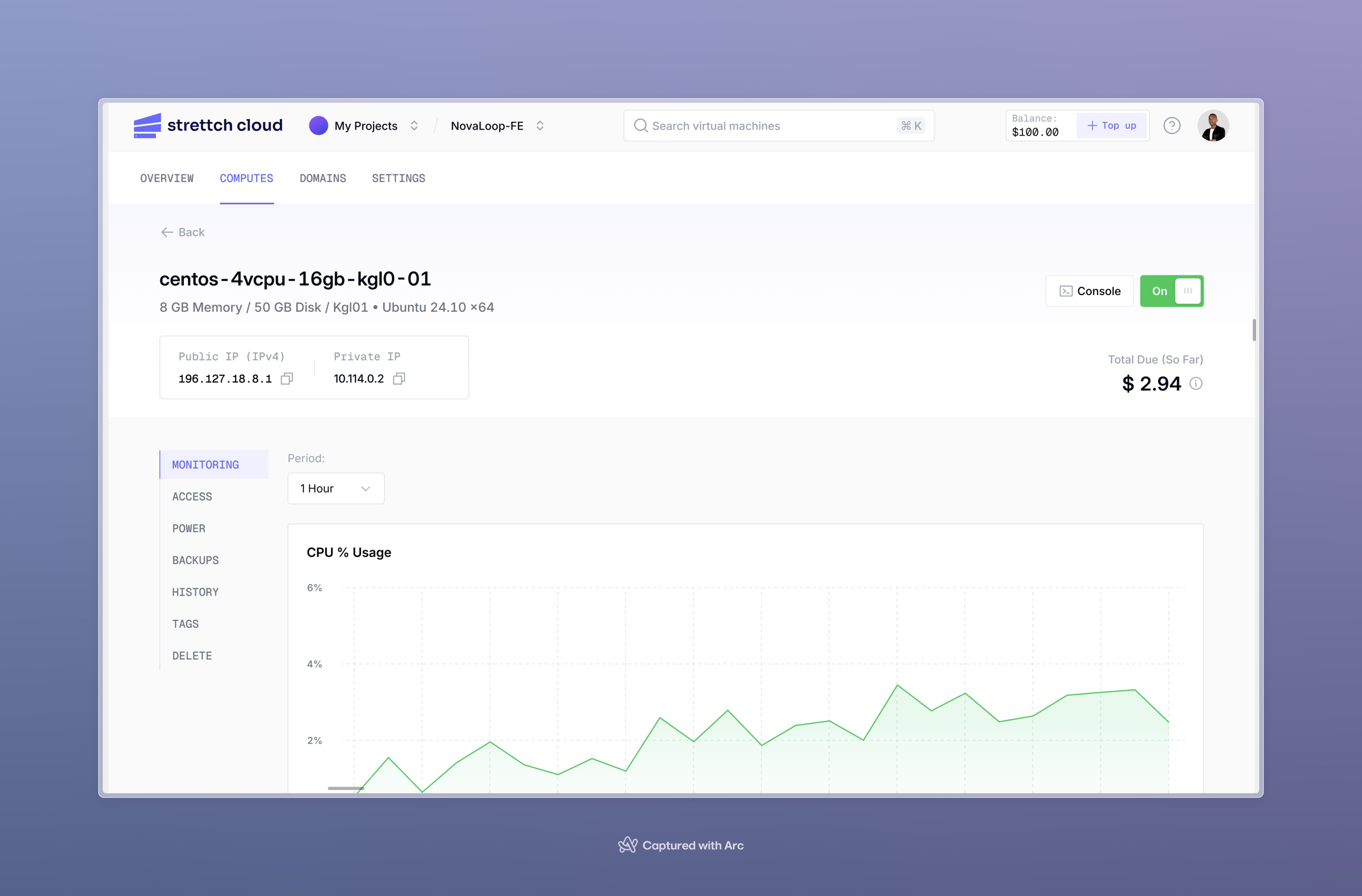 Locate your compute’s public IP address on the compute details page in the dashboard.