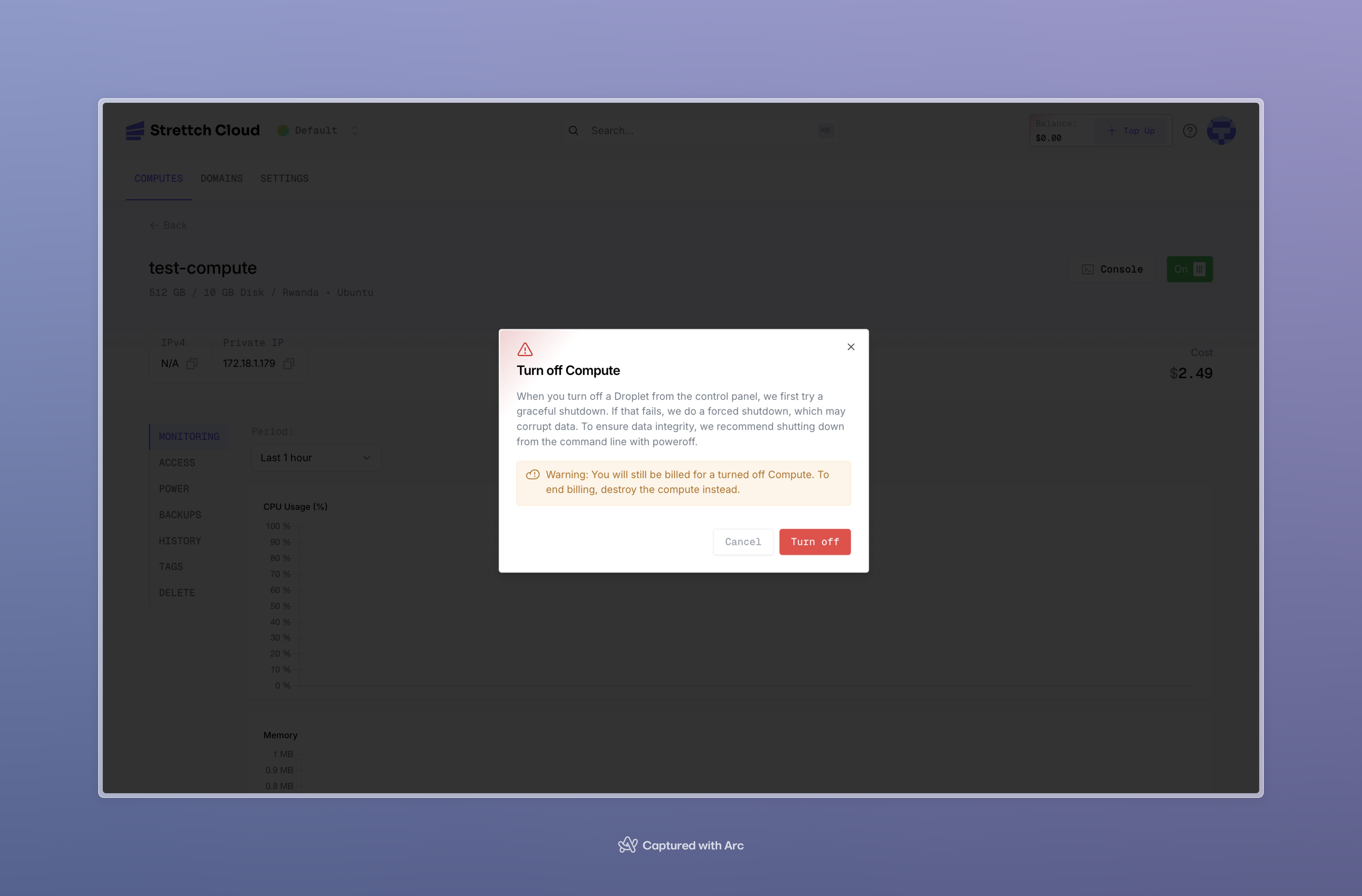 Your compute cost depends on the specs you selected. The price is shown during configuration. Ensure you have sufficient credits in your account to create the compute.