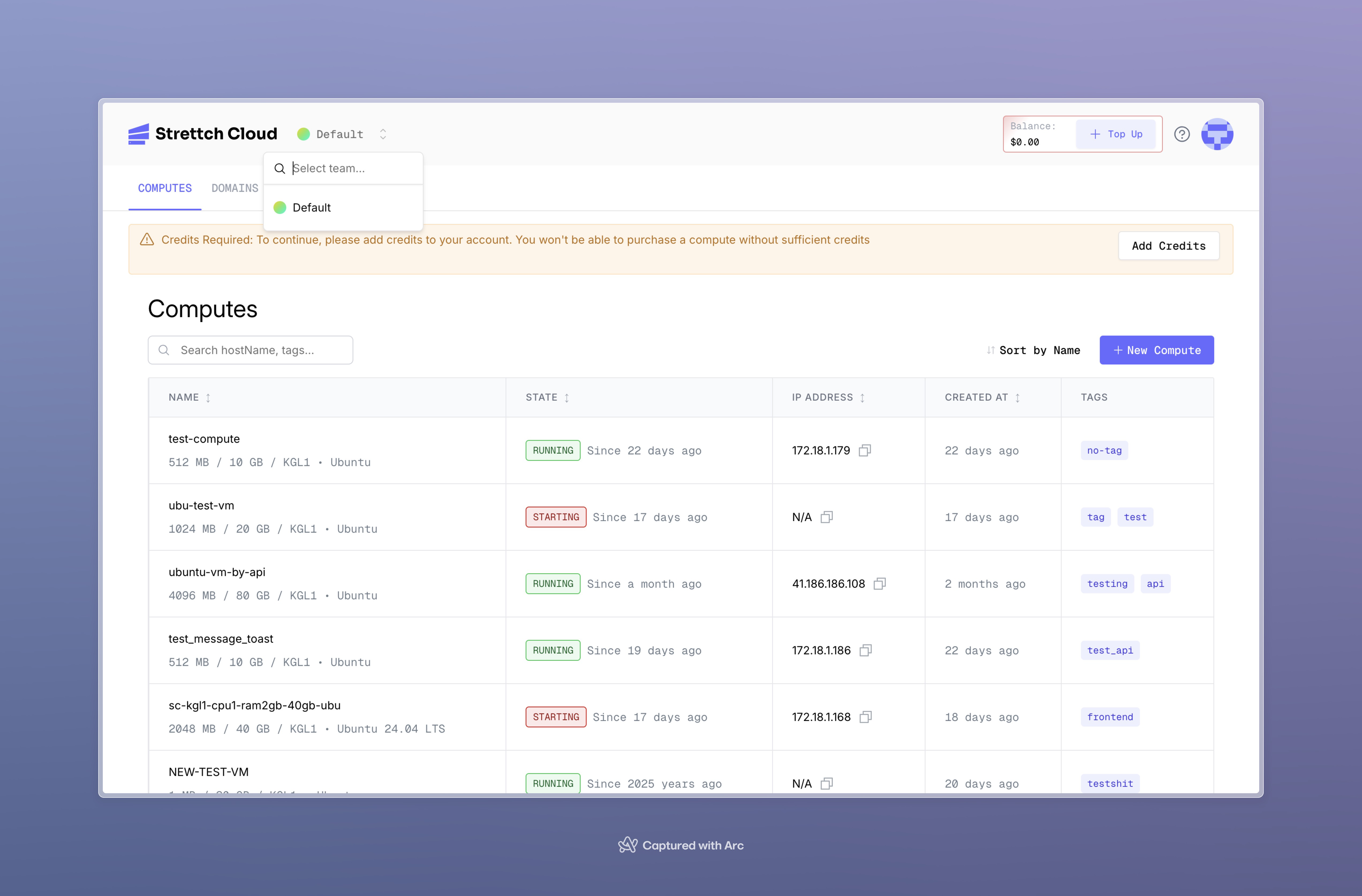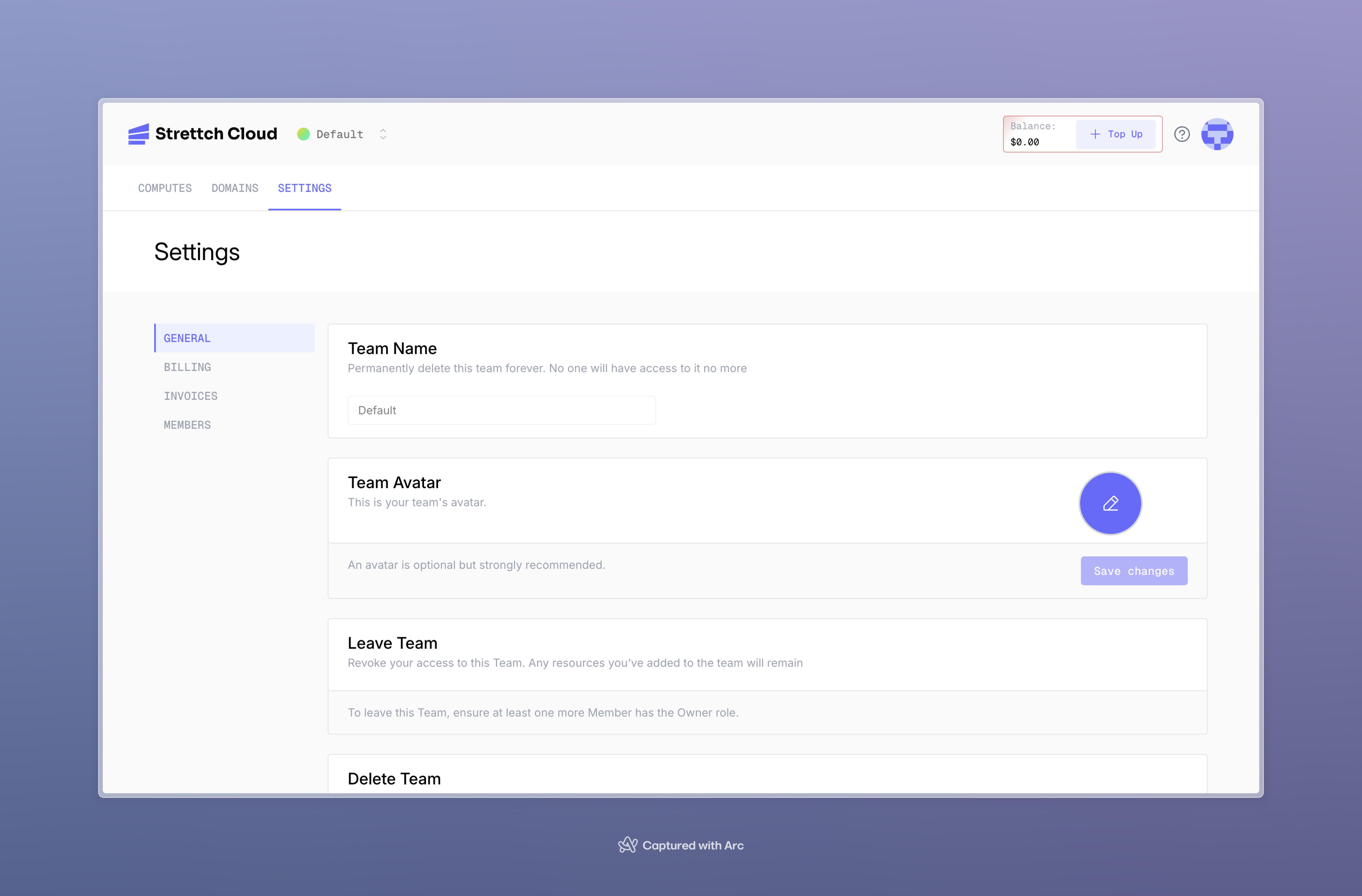 In the top left corner of any Strettch Cloud page, click on the team name.